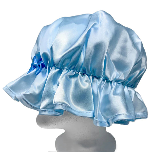 Kingsley Silky Satin Night Cap Sleeping Hats Sleep Bonnets Lite Blue