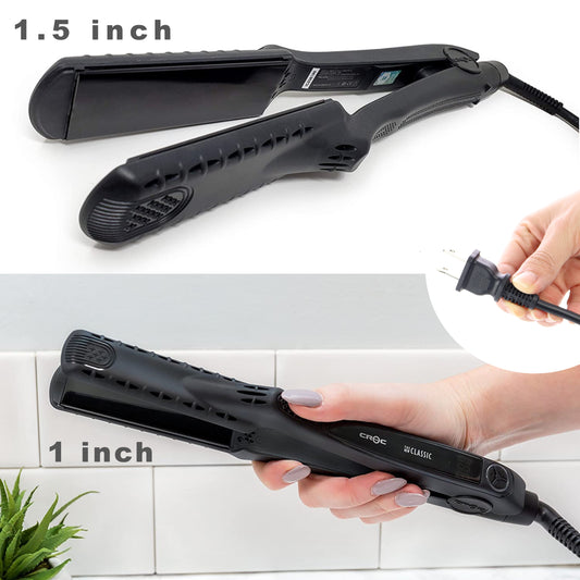 CROC Flat Iron Hair Straightener Floating Plates, Dual Voltage, Heats Up to 450℉